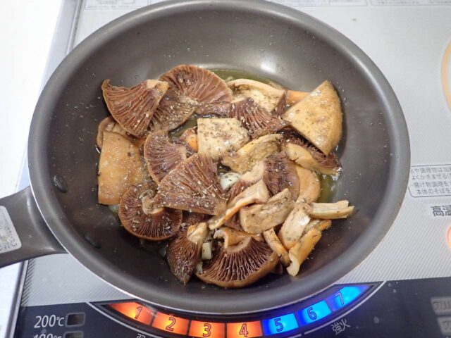 同じ仲間のチチタケよりはしっとりした身質で、噛むと旨みがしっかり感じられます。シンプルな味付けでキノコの美味しさが十分味わえます。