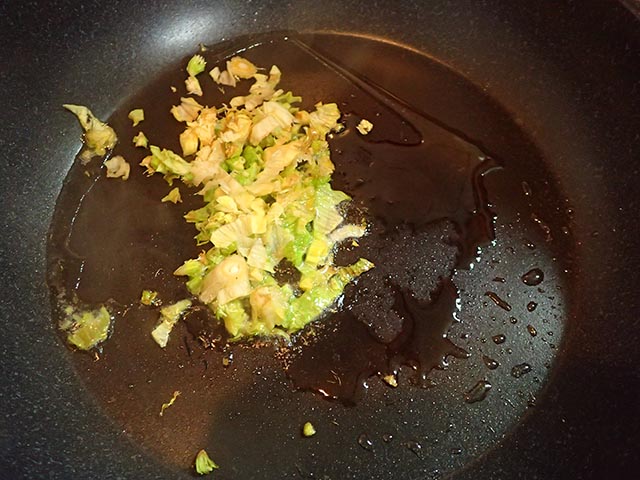 今回は刻んでからすぐ油で炒める作り方でフキ味噌を作る。