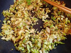 刻んでいく端からどんどんフライパンに投入して炒めていきます。