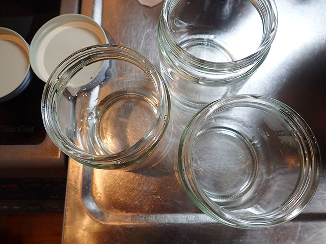 保存用の容器を用意します。今回は、3箇所に届けるのでビンを三つ。