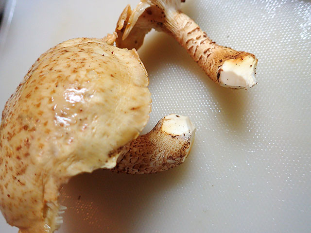 傘の部分は椎茸の様な食感です。柄の部分はちょっと固めなのでなるべく薄くスライスした方が良いですね。