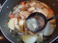 全体が沸いてくるとアクが浮いてくるのですくい取ってから蓋をして煮ていきます。
